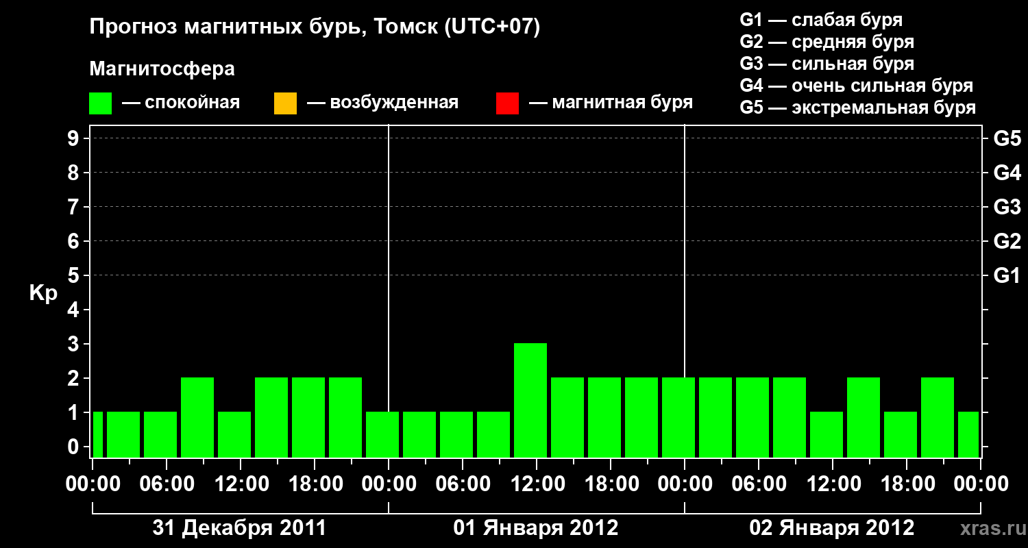 Прогноз магнитных бурь в Томске на 31 декабря 2011 года