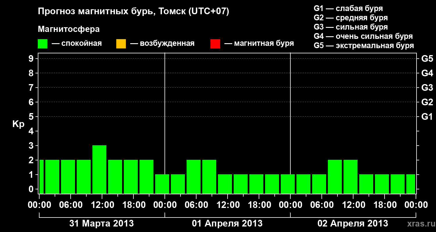 Прогноз магнитных бурь в Томске — 31 марта 2013 года
