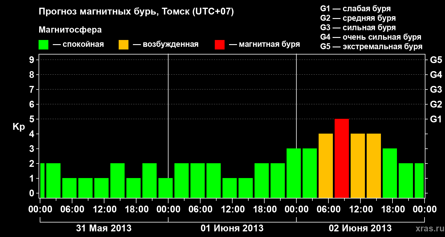 Прогноз магнитных бурь в Томске — 31 мая 2013 года