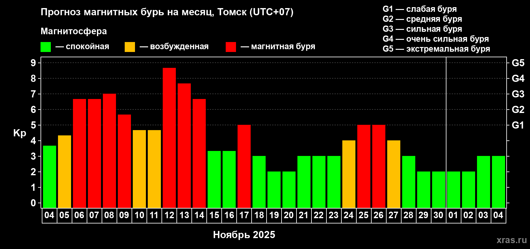 Прогноз магнитных бурь в Томске — 4 ноября 2025 года