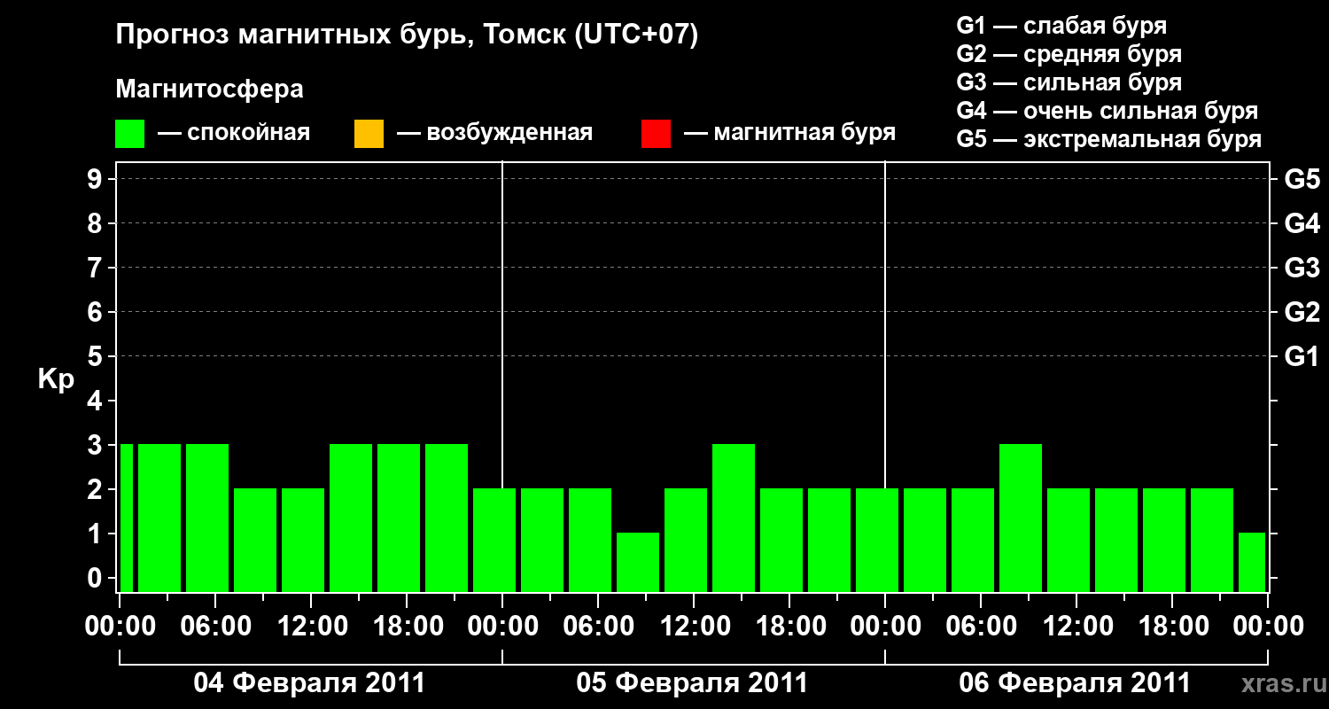 Прогноз магнитных бурь в Томске — 4 февраля 2011 года
