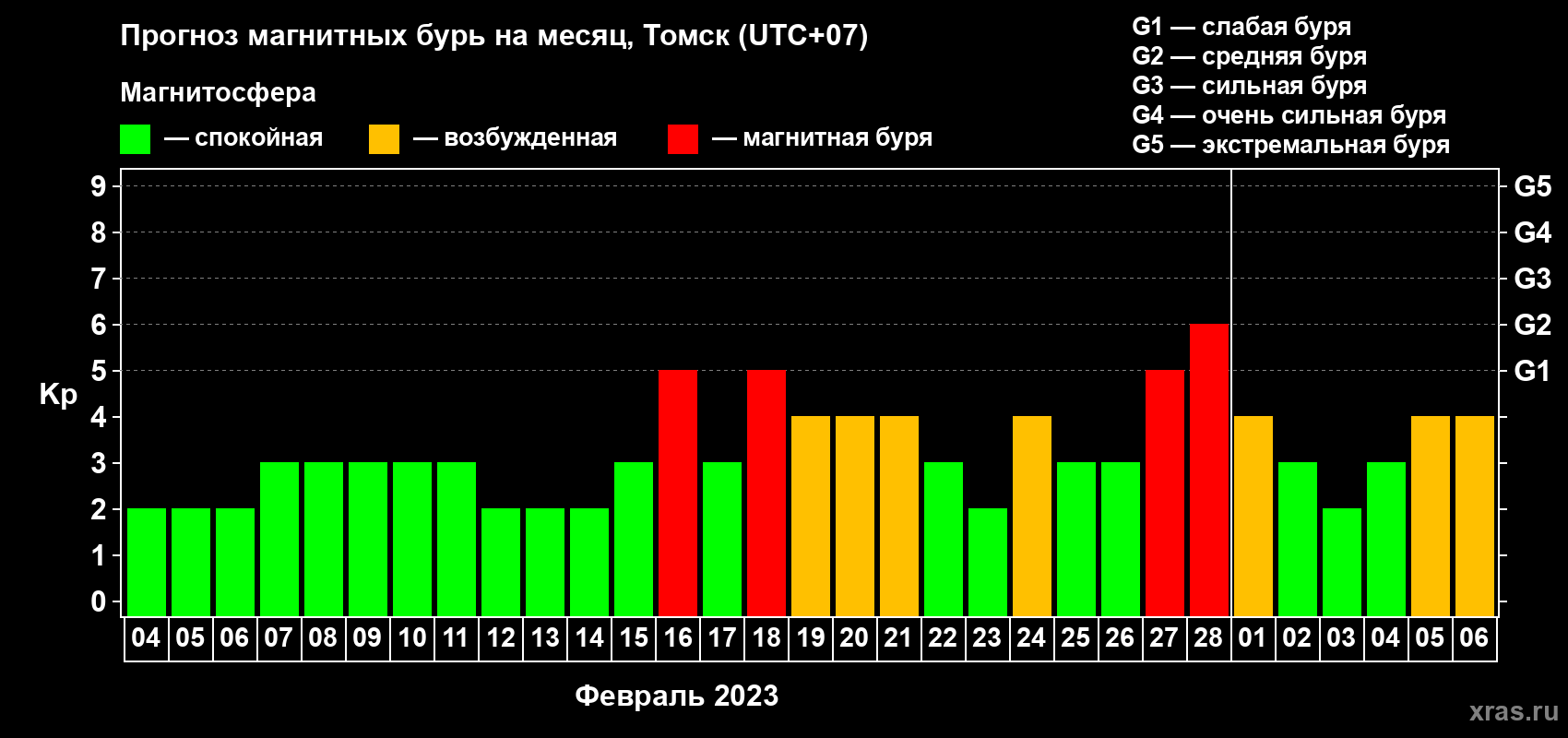 Прогноз магнитных бурь в Томске на 4 февраля 2023 года