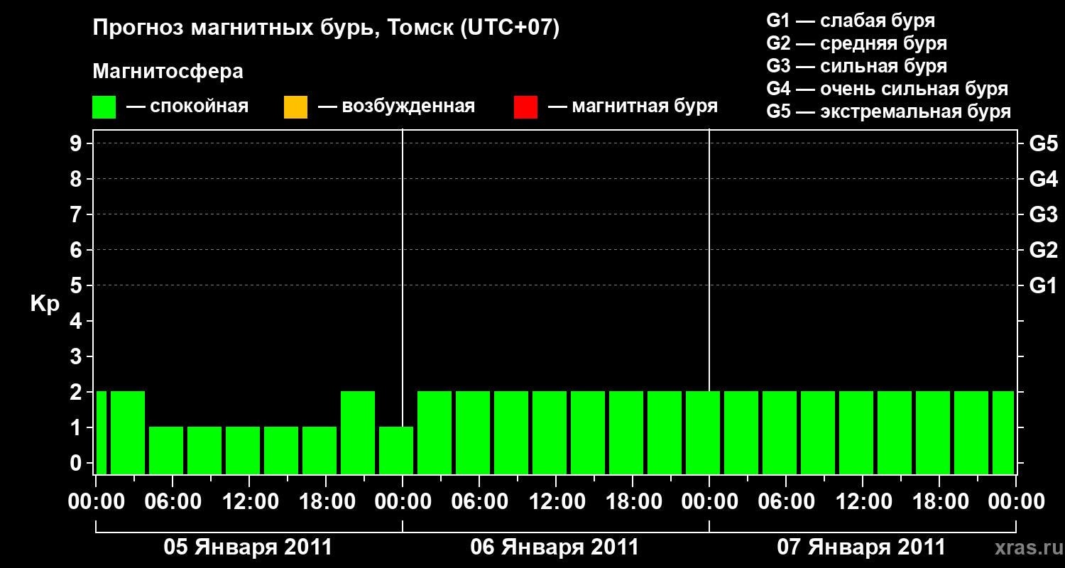 Прогноз магнитных бурь в Томске на 5 января 2011 года