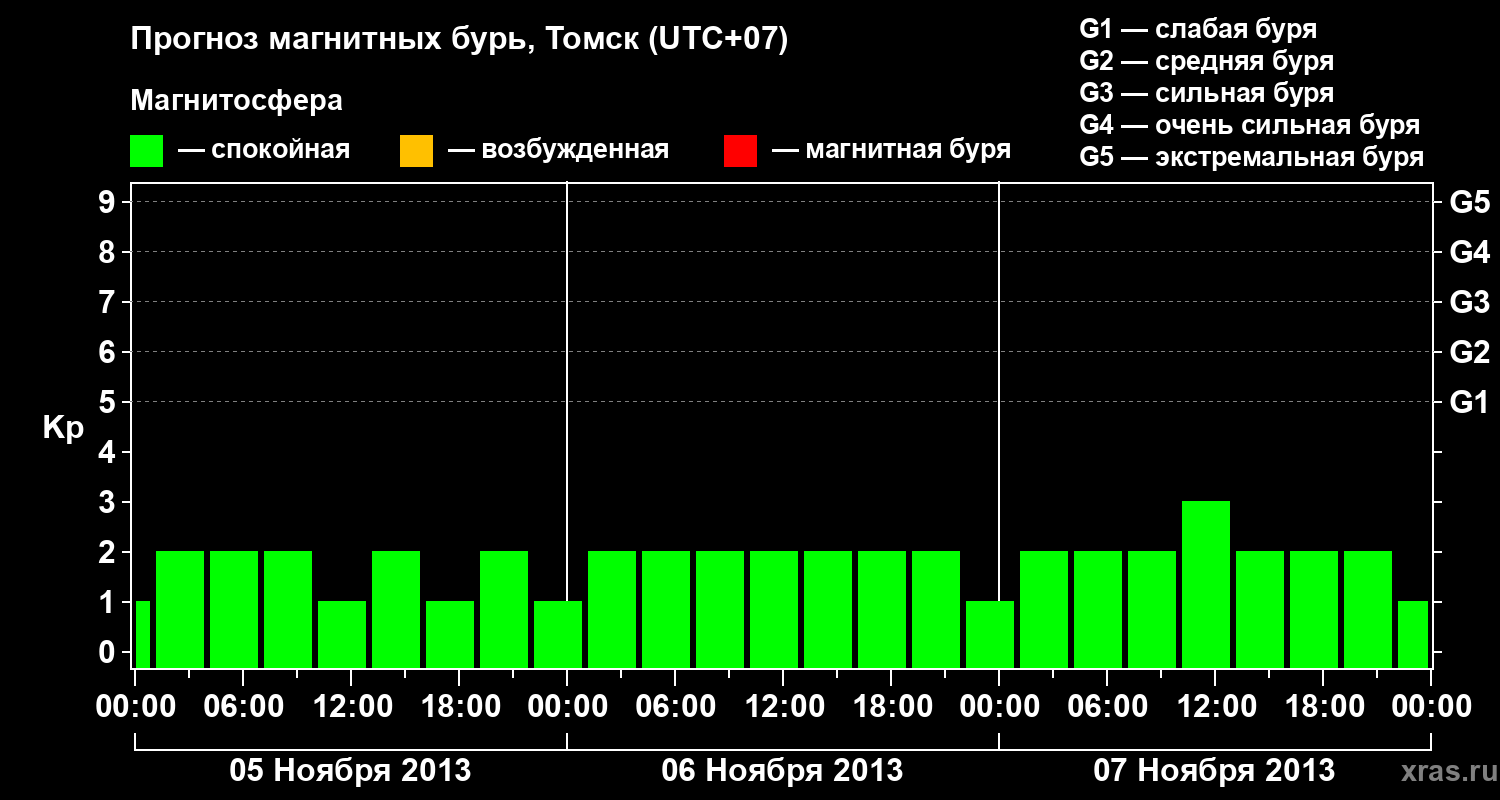 Прогноз магнитных бурь в Томске — 5 ноября 2013 года
