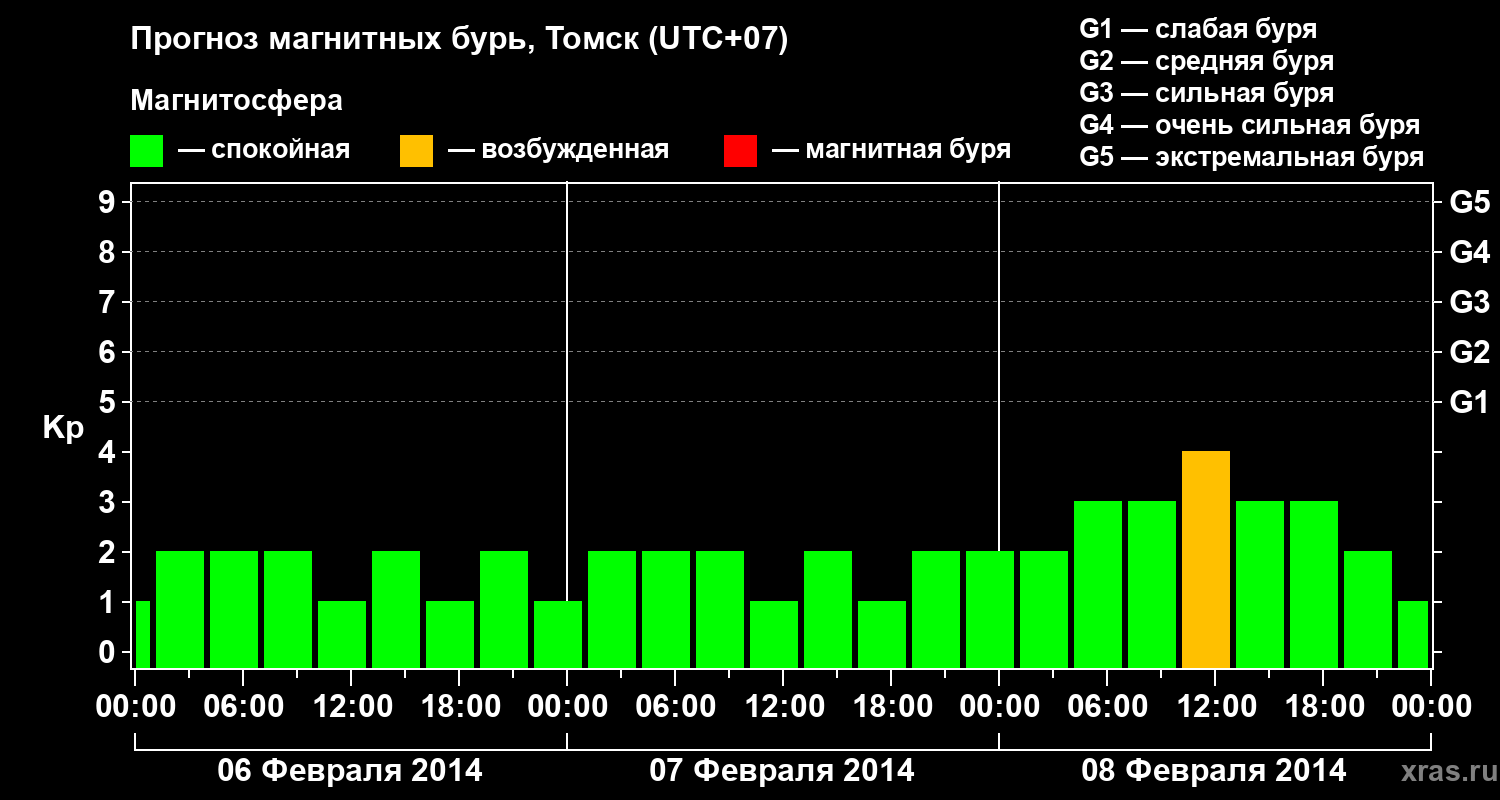 Прогноз магнитных бурь в Томске — 6 февраля 2014 года