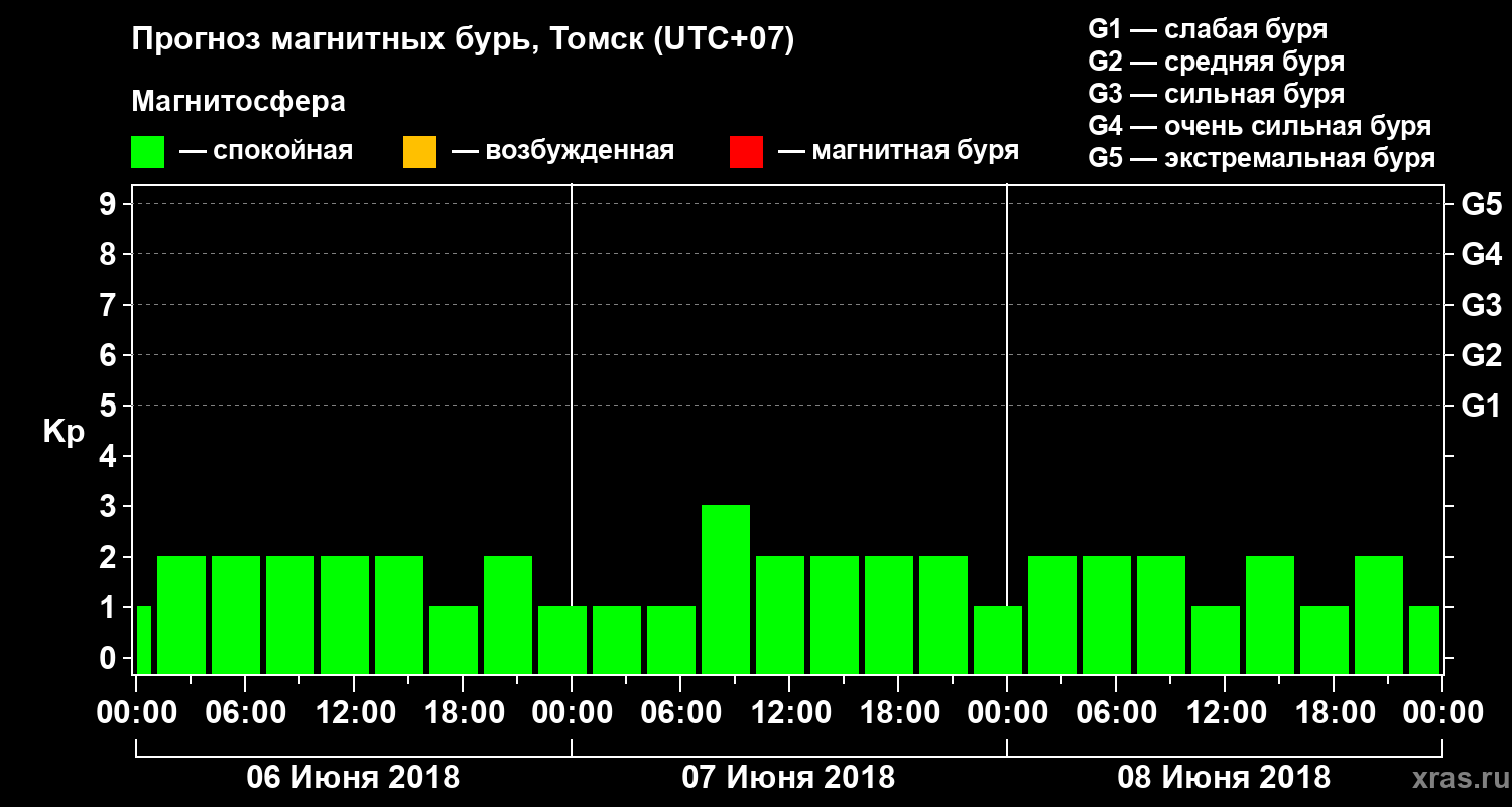 Прогноз магнитных бурь в Томске — 6 июня 2018 года