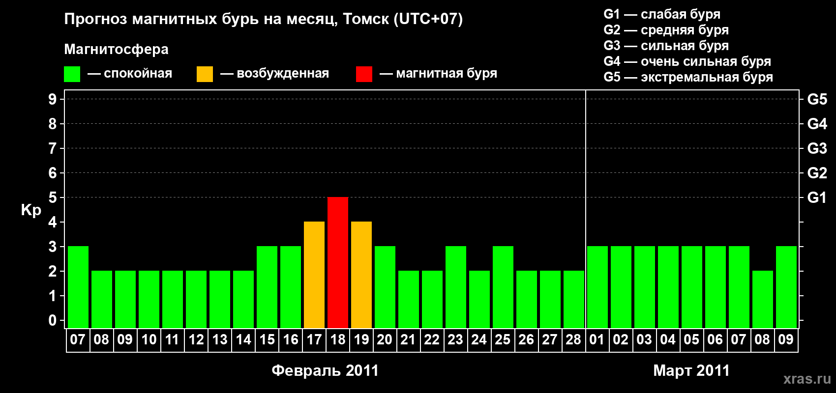 Прогноз магнитных бурь в Томске — 7 февраля 2011 года