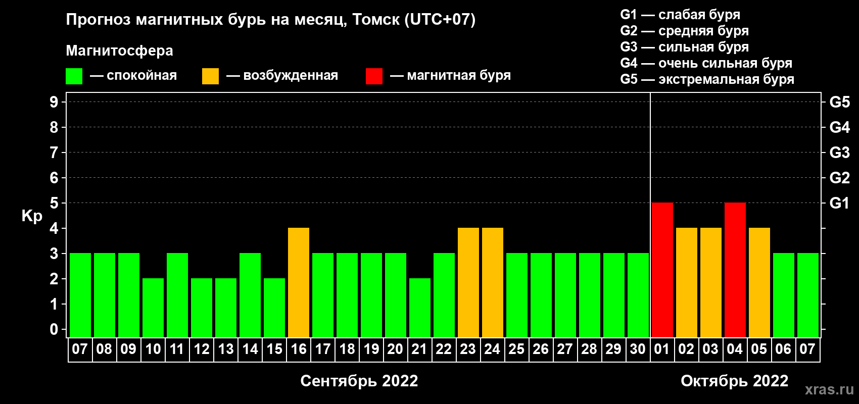 Прогноз магнитных бурь в Томске на 7 сентября 2022 года
