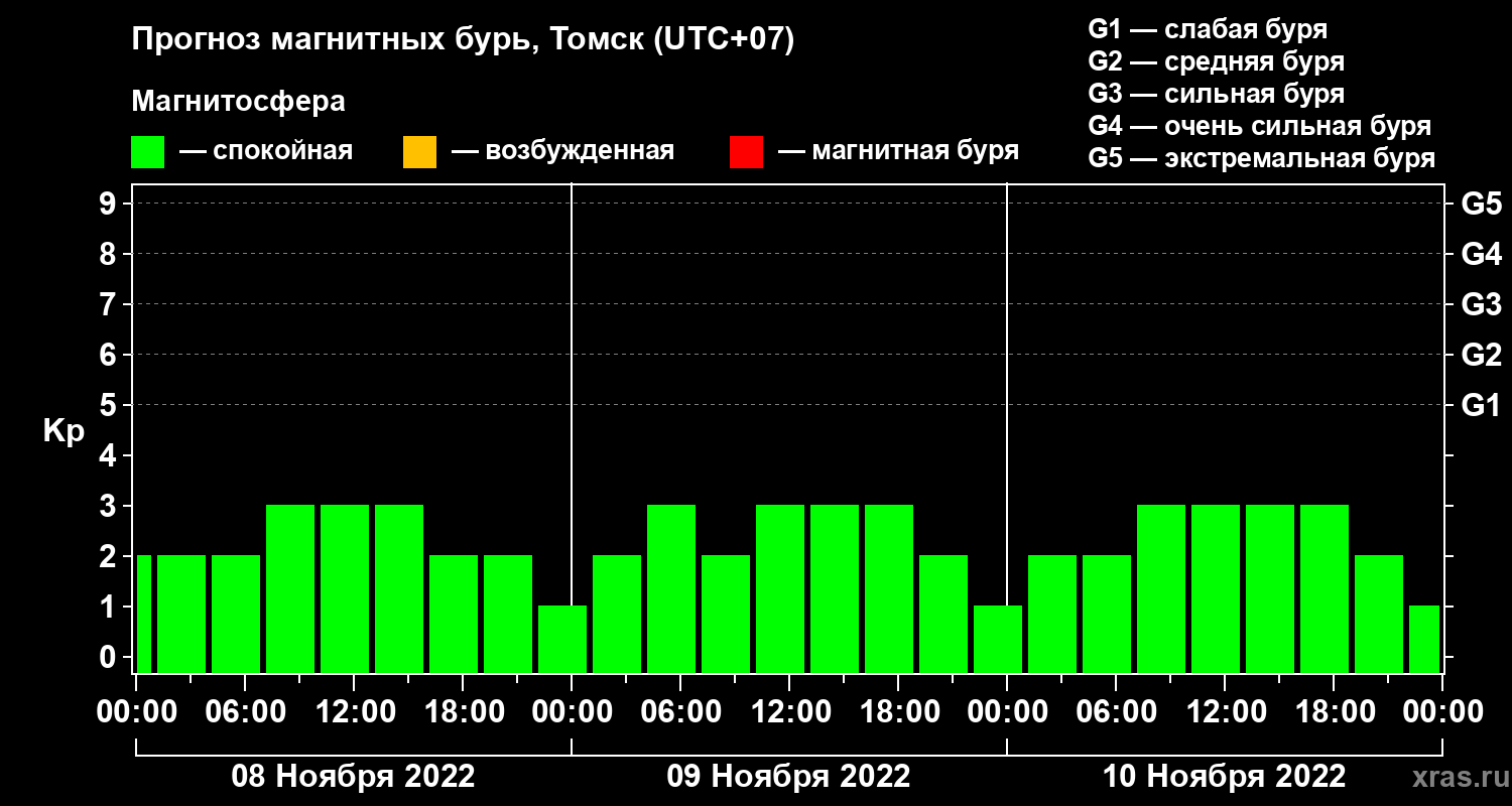 Прогноз магнитных бурь в Томске — 8 ноября 2022 года