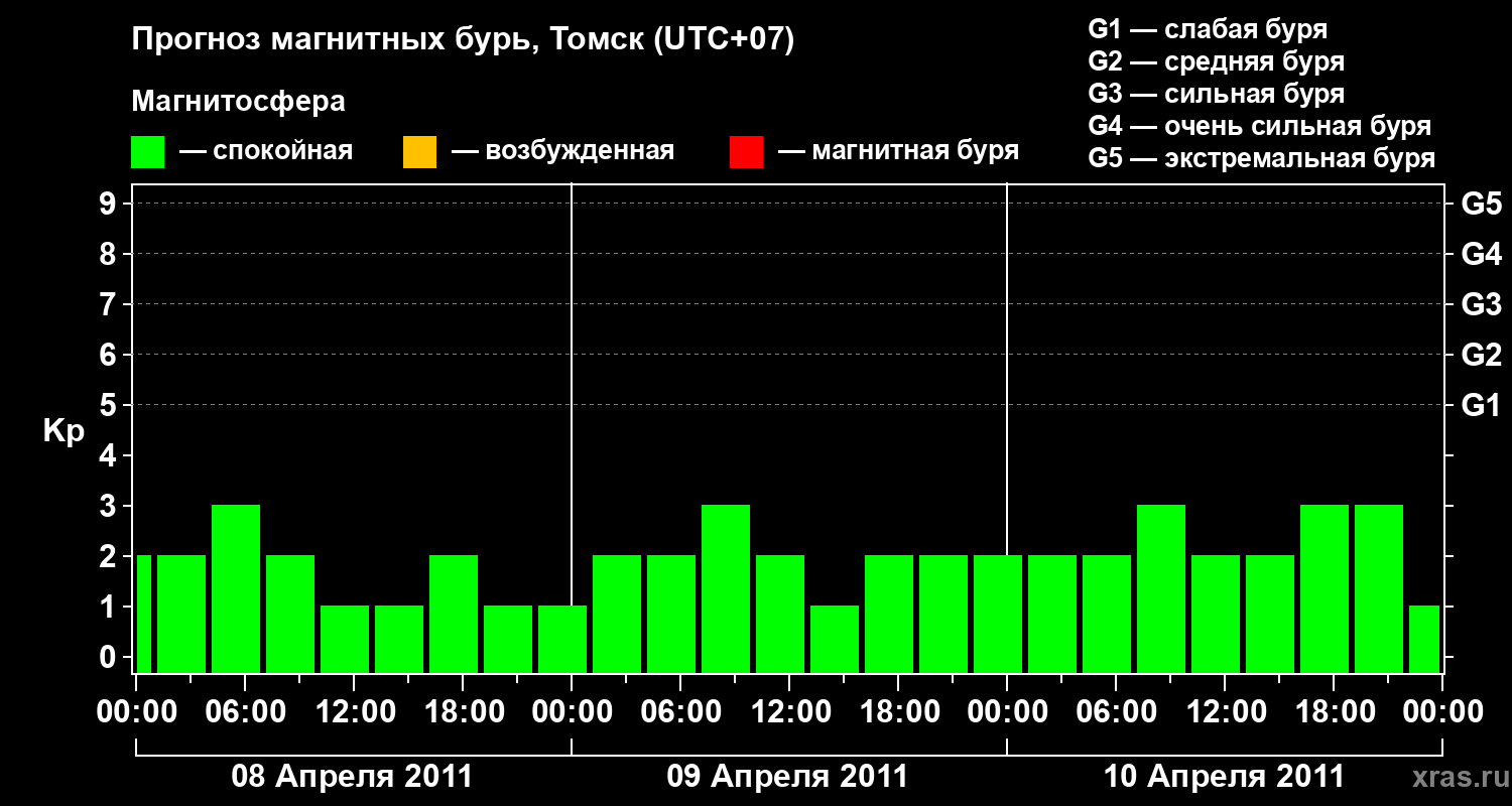 Прогноз магнитных бурь в Томске — 8 апреля 2011 года