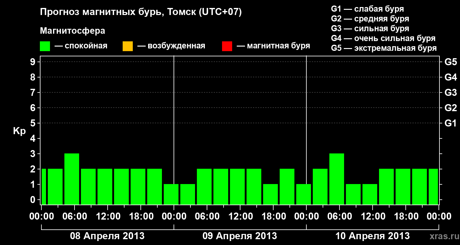 Прогноз магнитных бурь в Томске — 8 апреля 2013 года