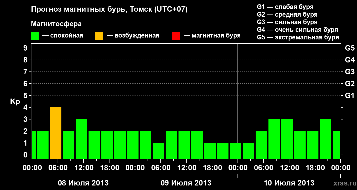 Прогноз магнитных бурь в Томске на 8 июля 2013 года