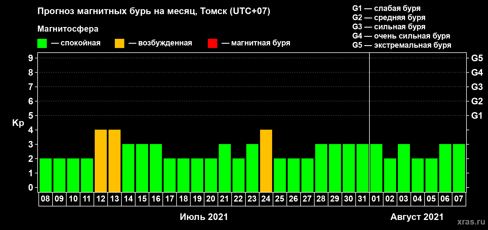 Прогноз магнитных бурь в Томске — 8 июля 2021 года