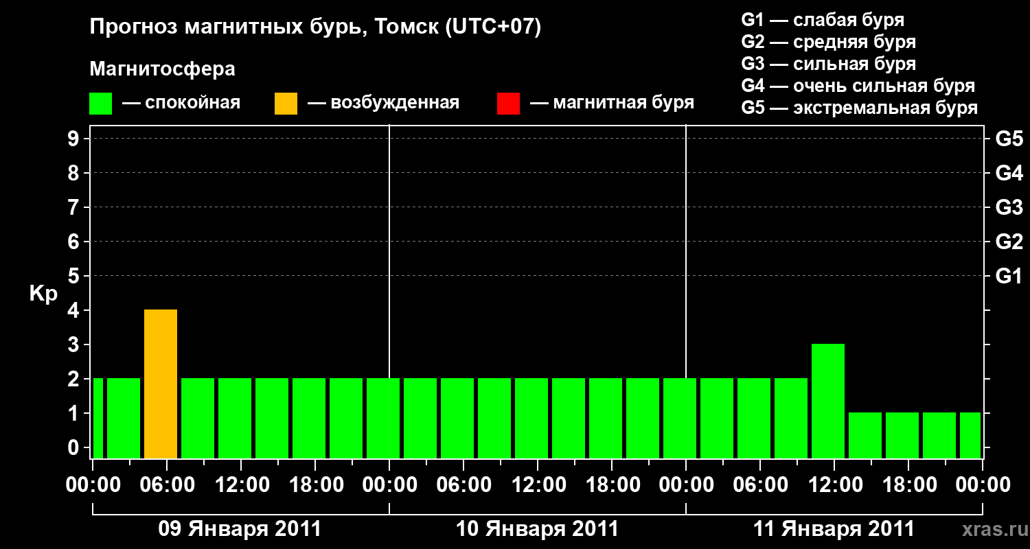 Прогноз магнитных бурь в Томске — 9 января 2011 года