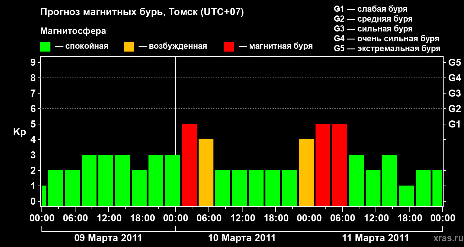Прогноз магнитных бурь в Томске — 9 марта 2011 года