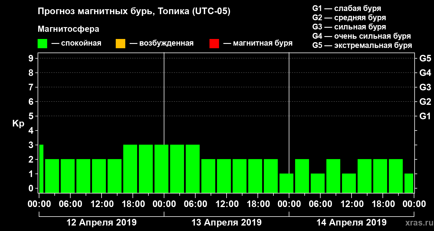 Прогноз магнитных бурь в Топике — 12 апреля 2019 года