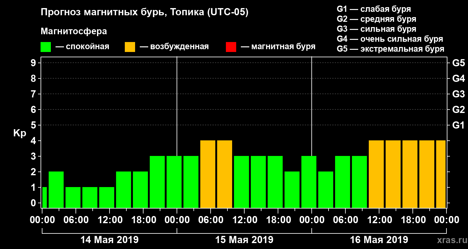 Прогноз магнитных бурь в Топике — 14 мая 2019 года