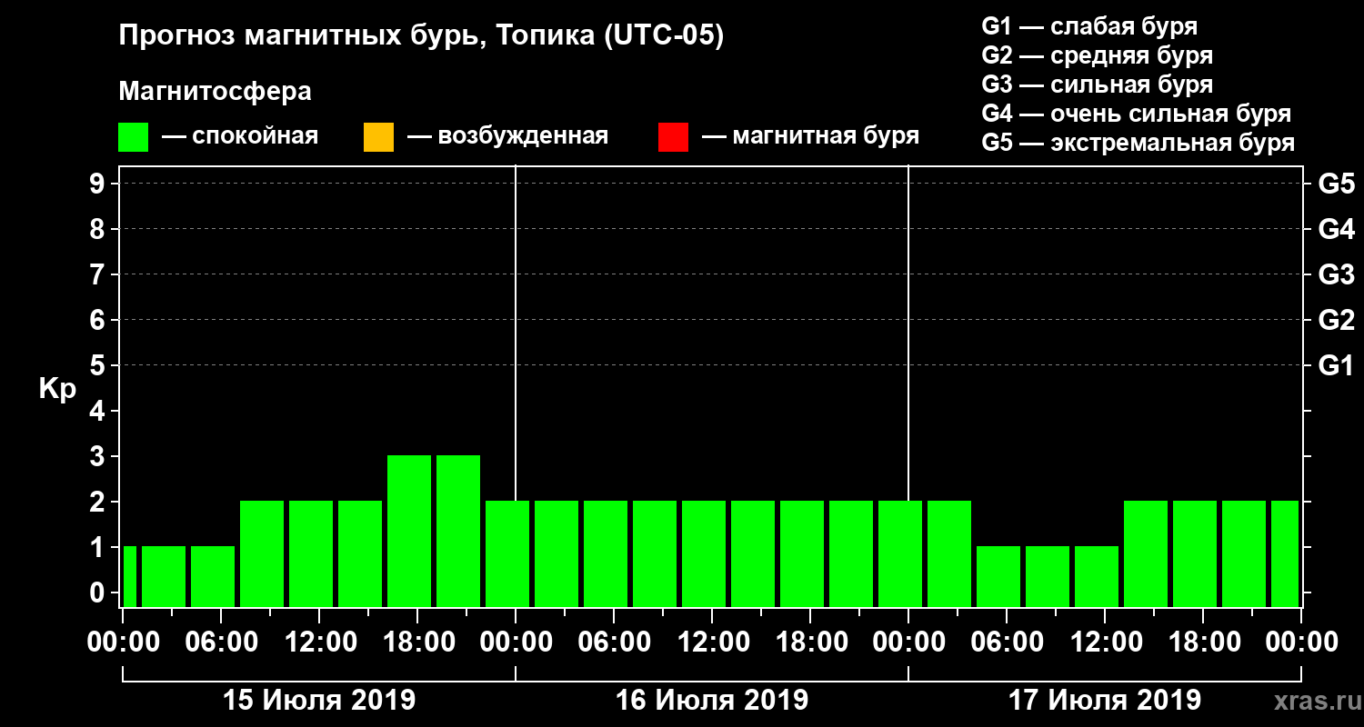 Прогноз магнитных бурь в Топике — 15 июля 2019 года
