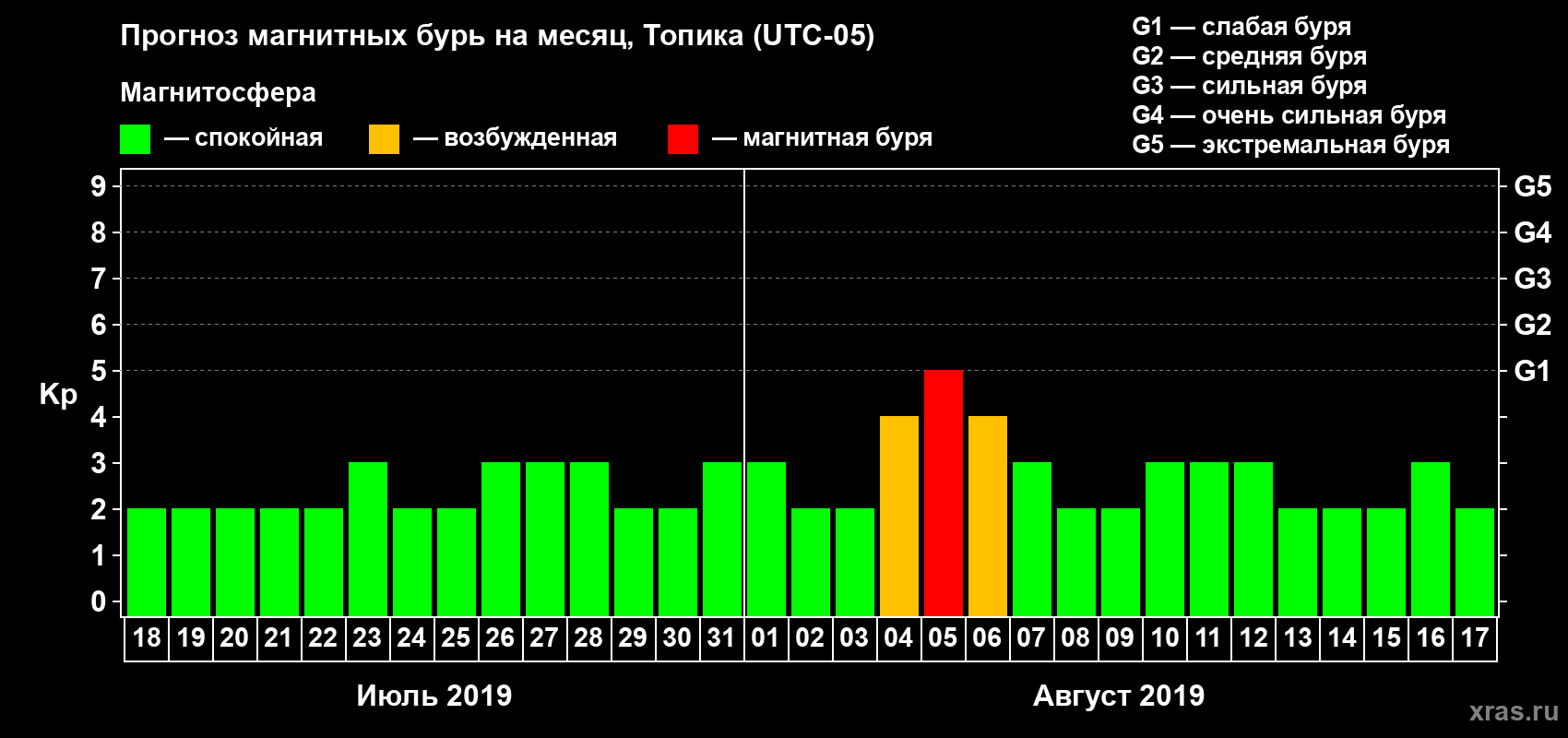 Прогноз магнитных бурь в Топике — 18 июля 2019 года