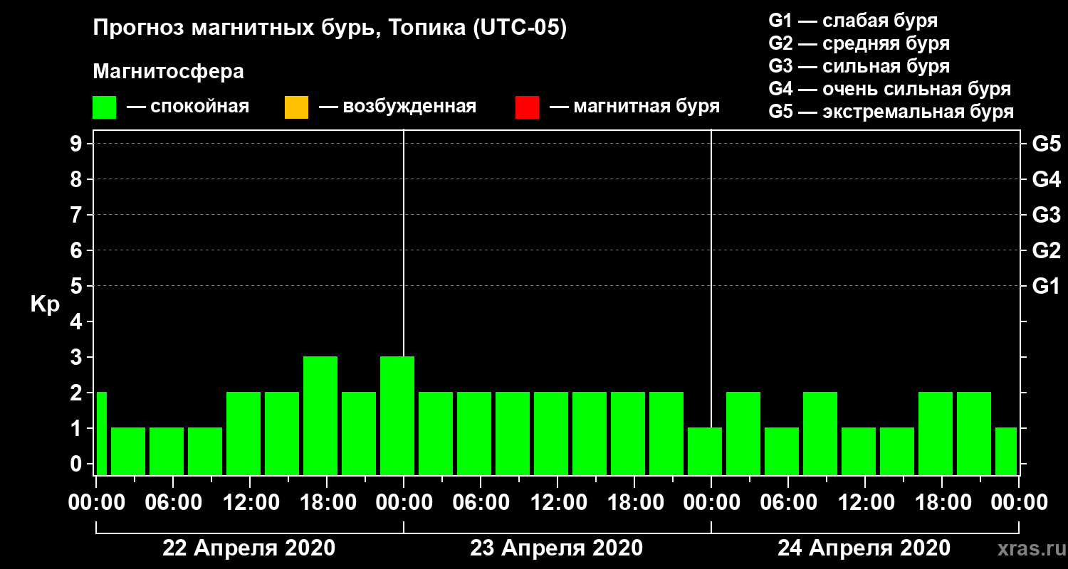 Прогноз магнитных бурь в Топике — 22 апреля 2020 года