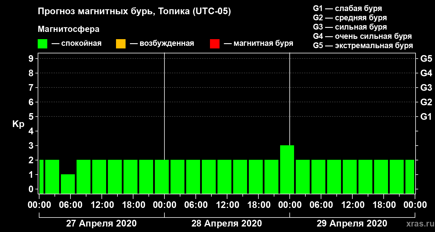 Прогноз магнитных бурь в Топике на 27 апреля 2020 года