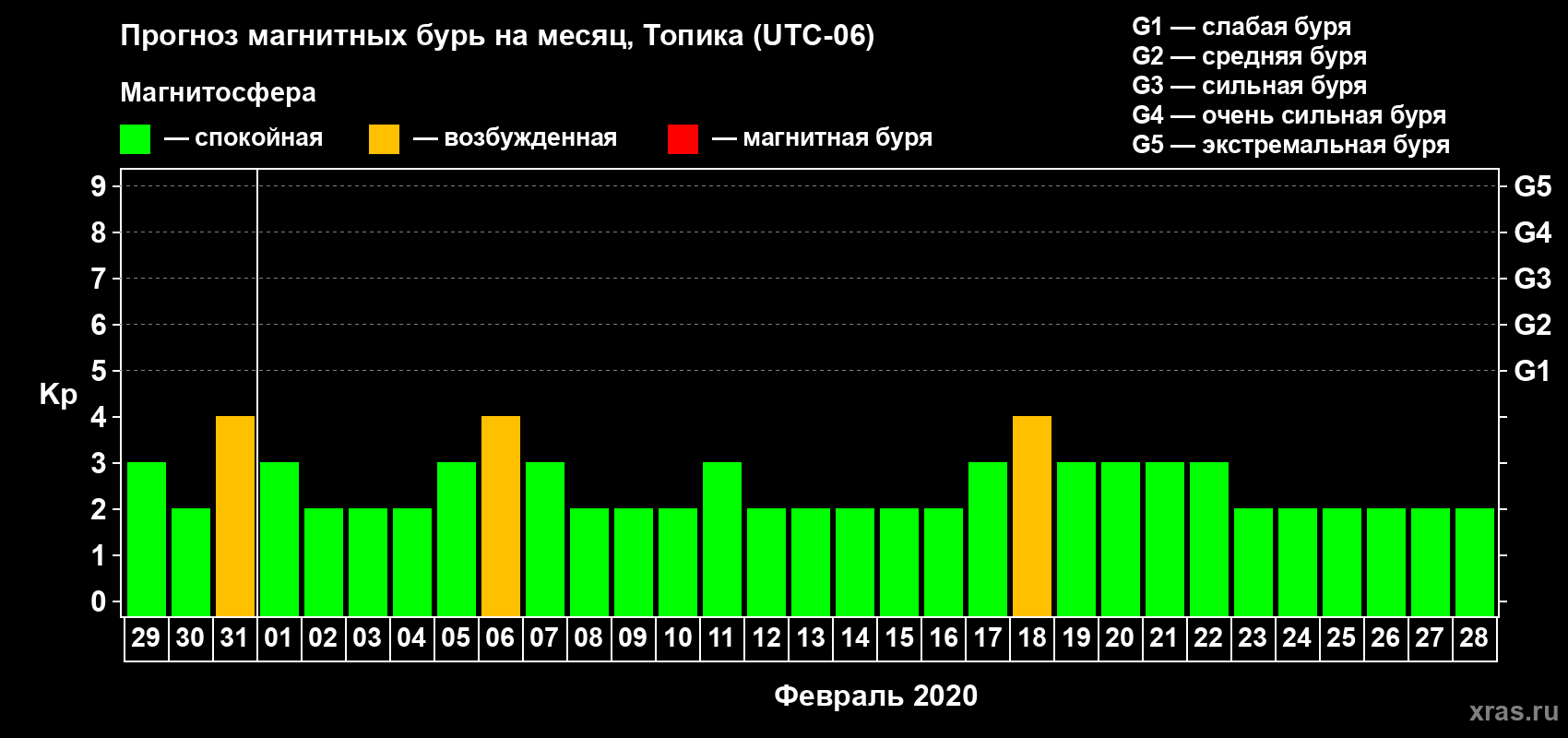 Прогноз магнитных бурь в Топике — 29 января 2020 года