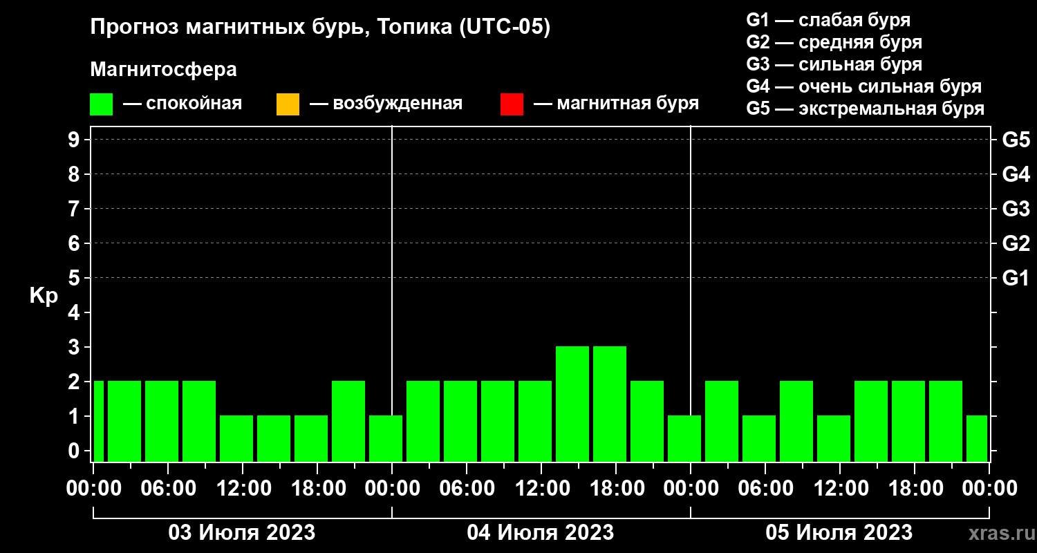 Прогноз магнитных бурь в Топике — 3 июля 2023 года