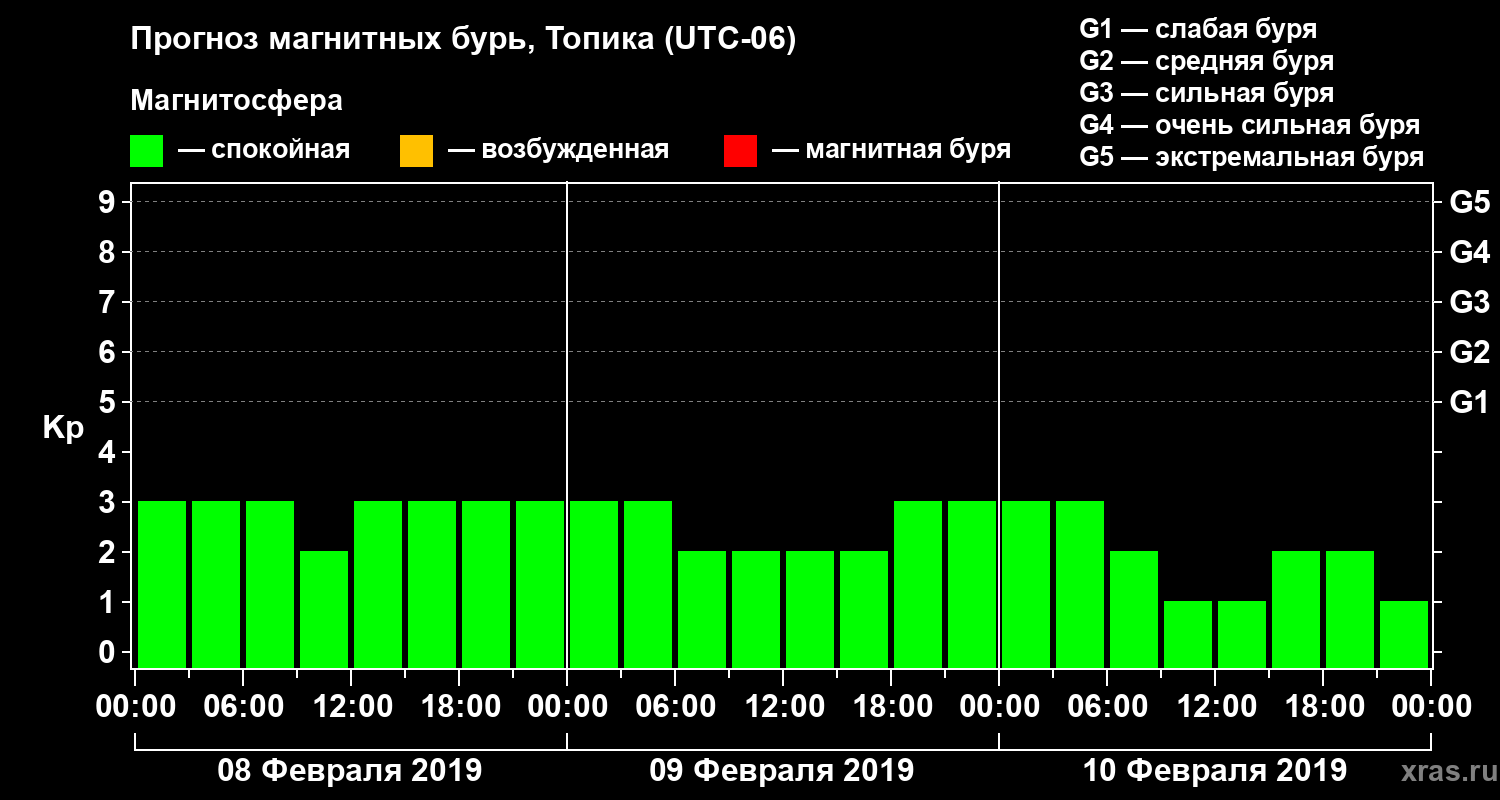 Прогноз магнитных бурь в Топике — 8 февраля 2019 года