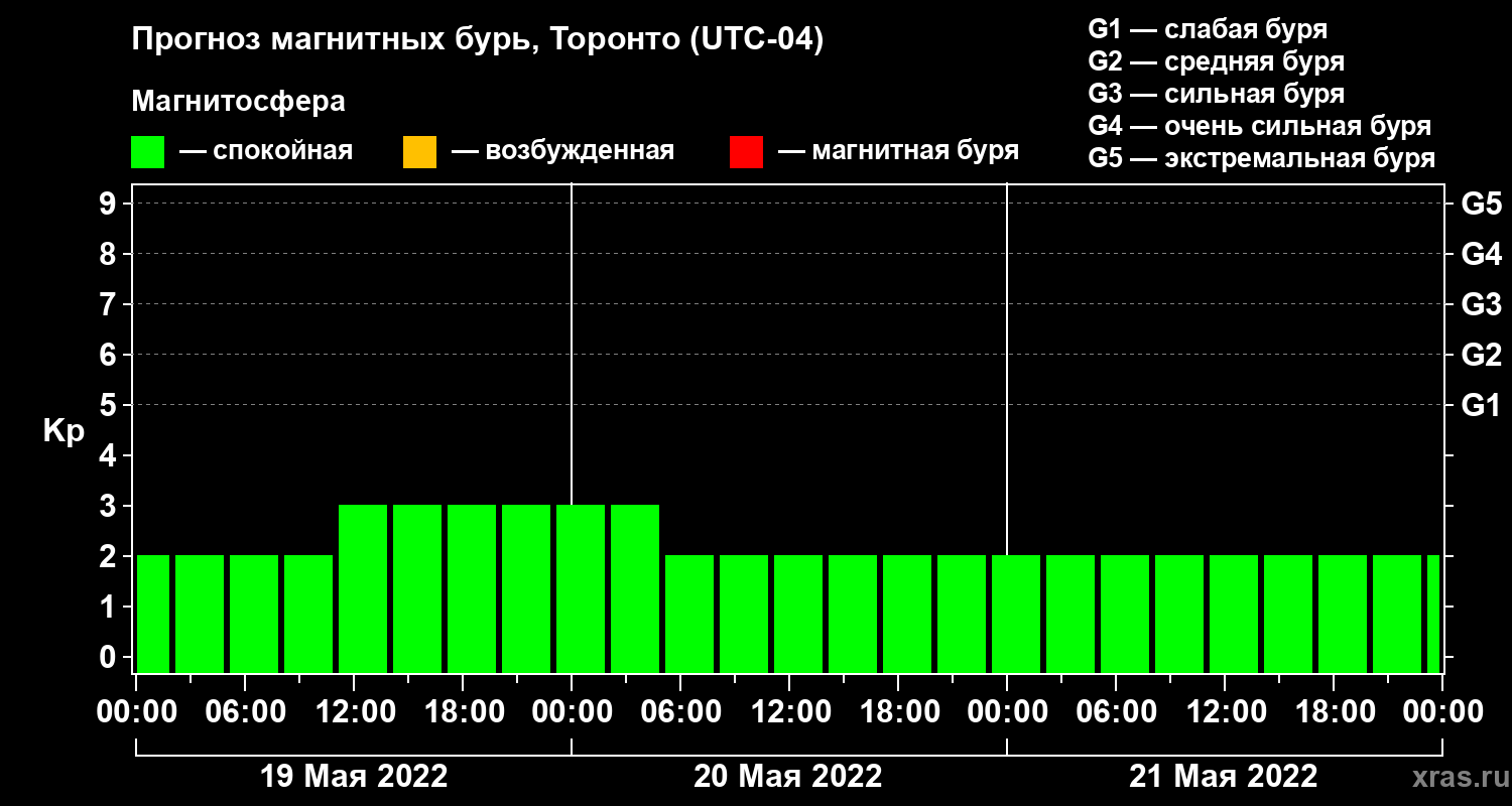 Прогноз магнитных бурь Торонто на 19 мая 2022 года
