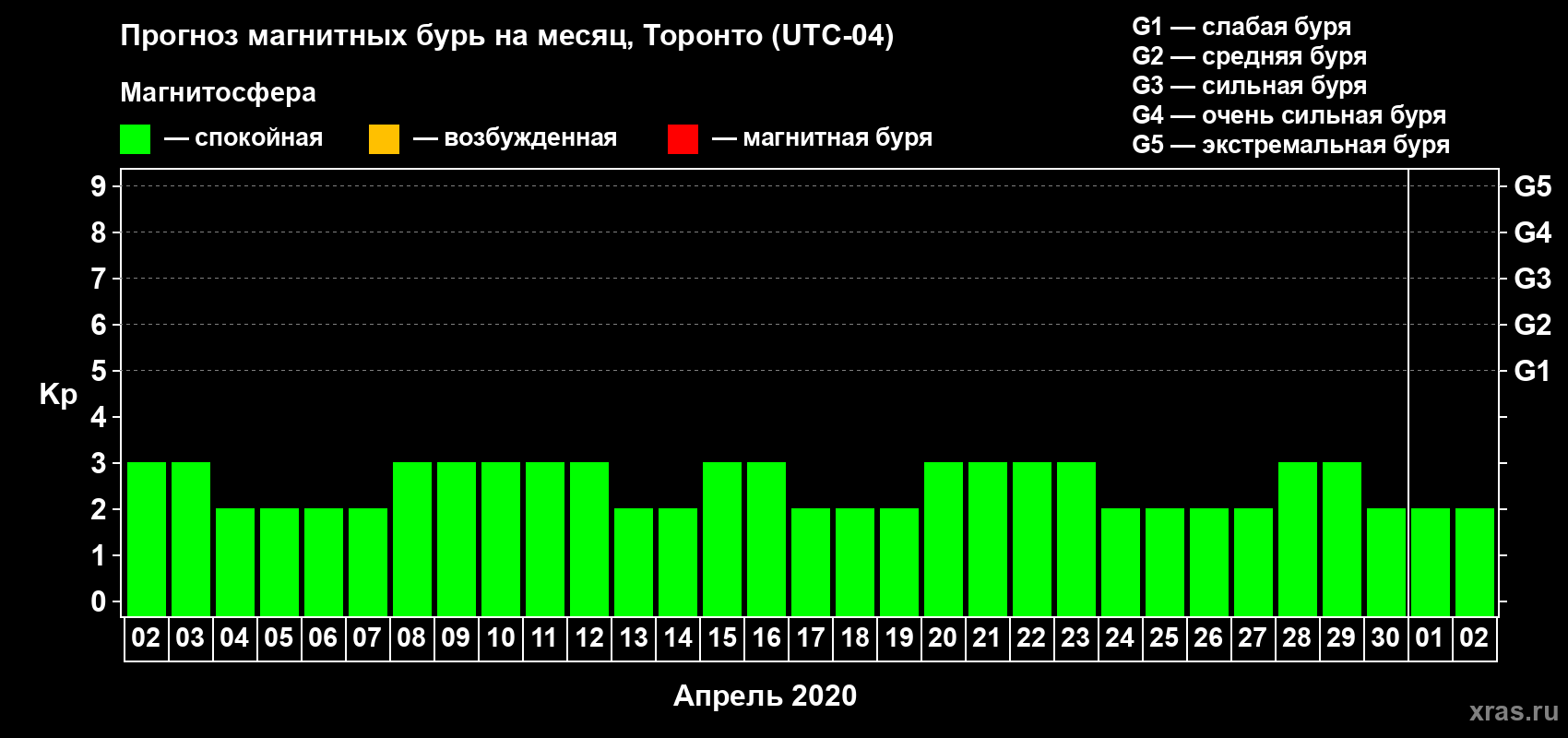 Прогноз магнитных бурь Торонто на 2 апреля 2020 года