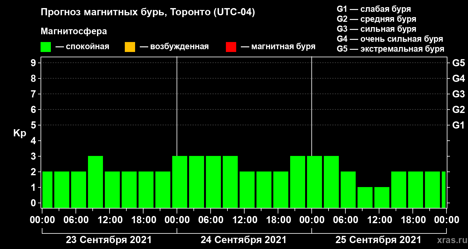 Прогноз магнитных бурь Торонто на 23 сентября 2021 года