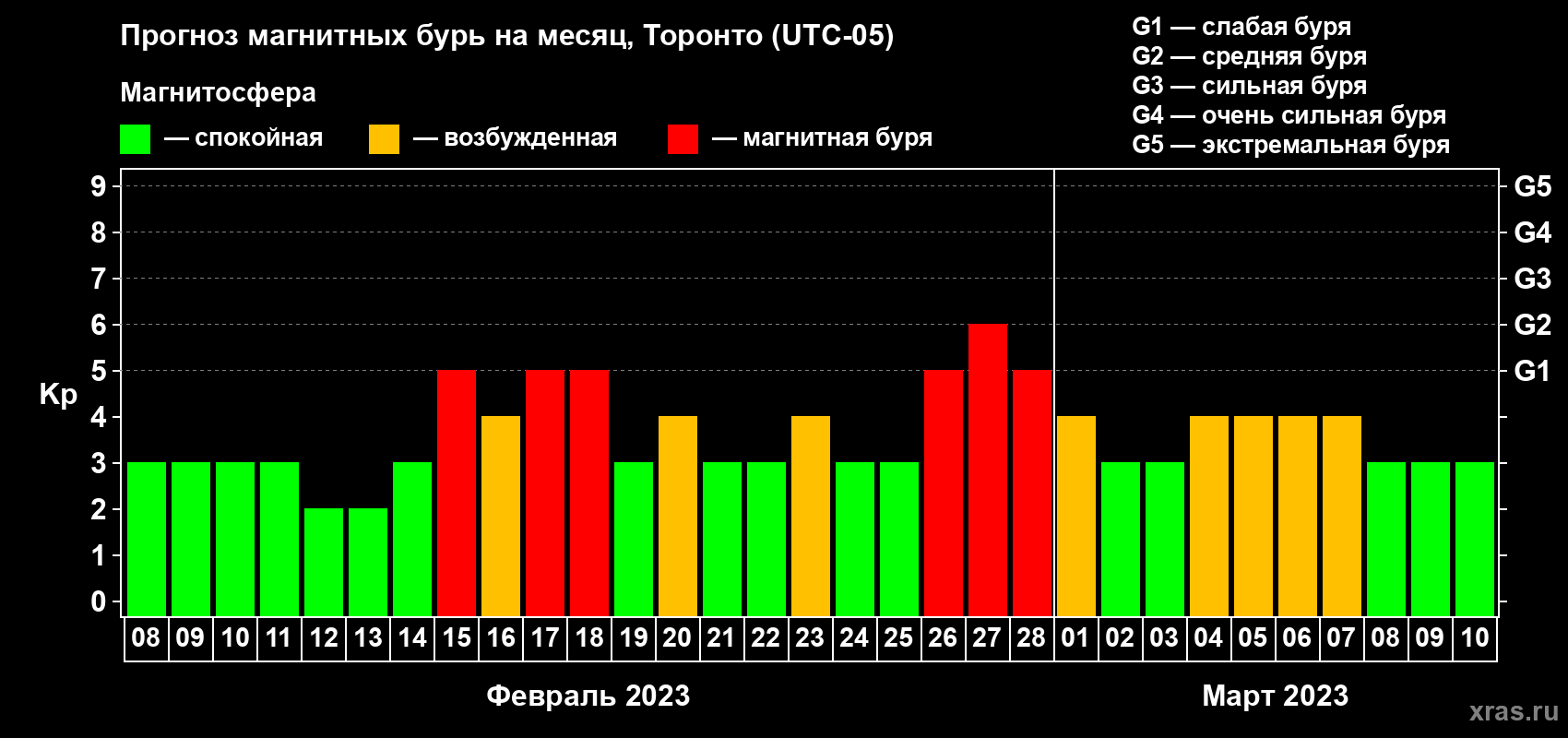 Прогноз магнитных бурь Торонто на 8 февраля 2023 года