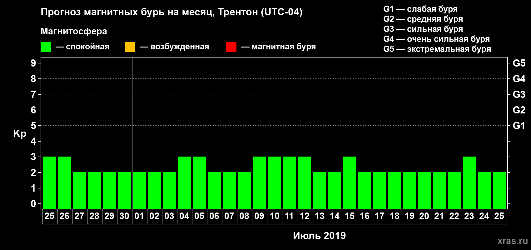 Прогноз магнитных бурь в Трентоне — 25 июня 2019 года