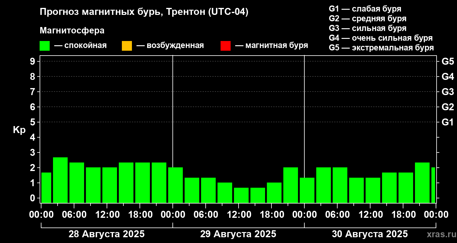 Прогноз магнитных бурь в Трентоне на 28 августа 2025 года