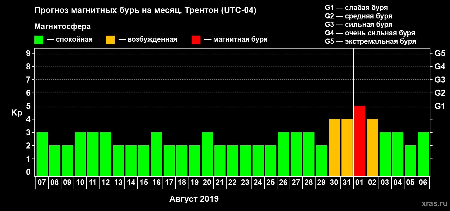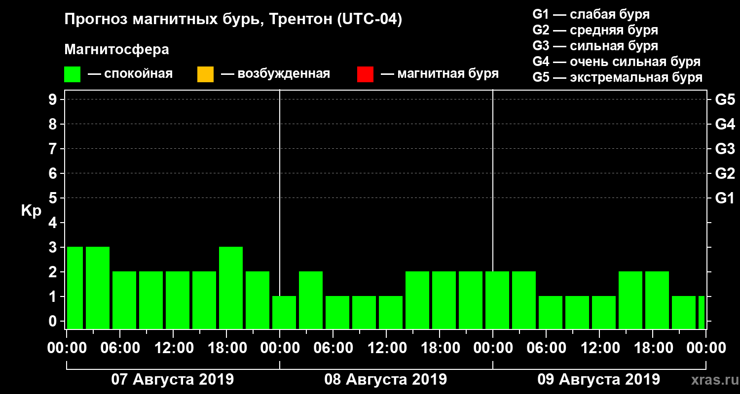 Прогноз магнитных бурь в Трентоне — 7 августа 2019 года