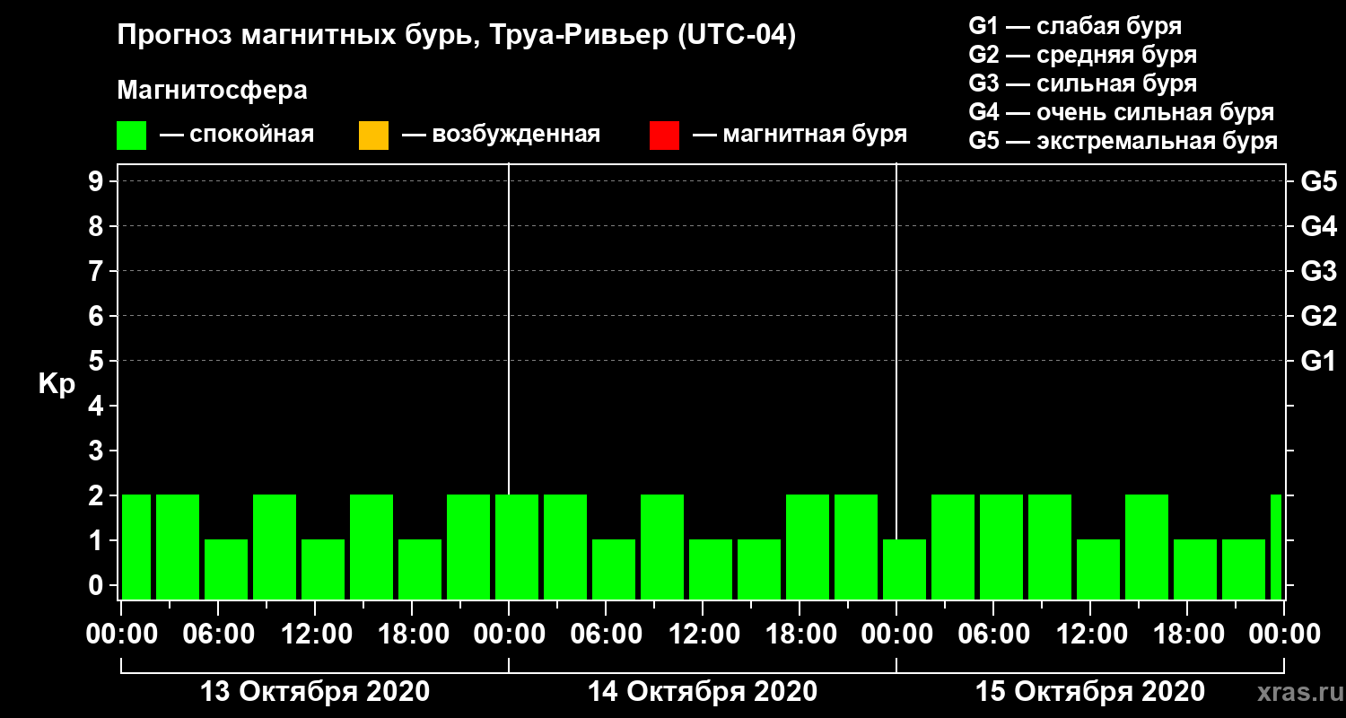 Прогноз магнитных бурь в Труа-Ривьере — 13 октября 2020 года