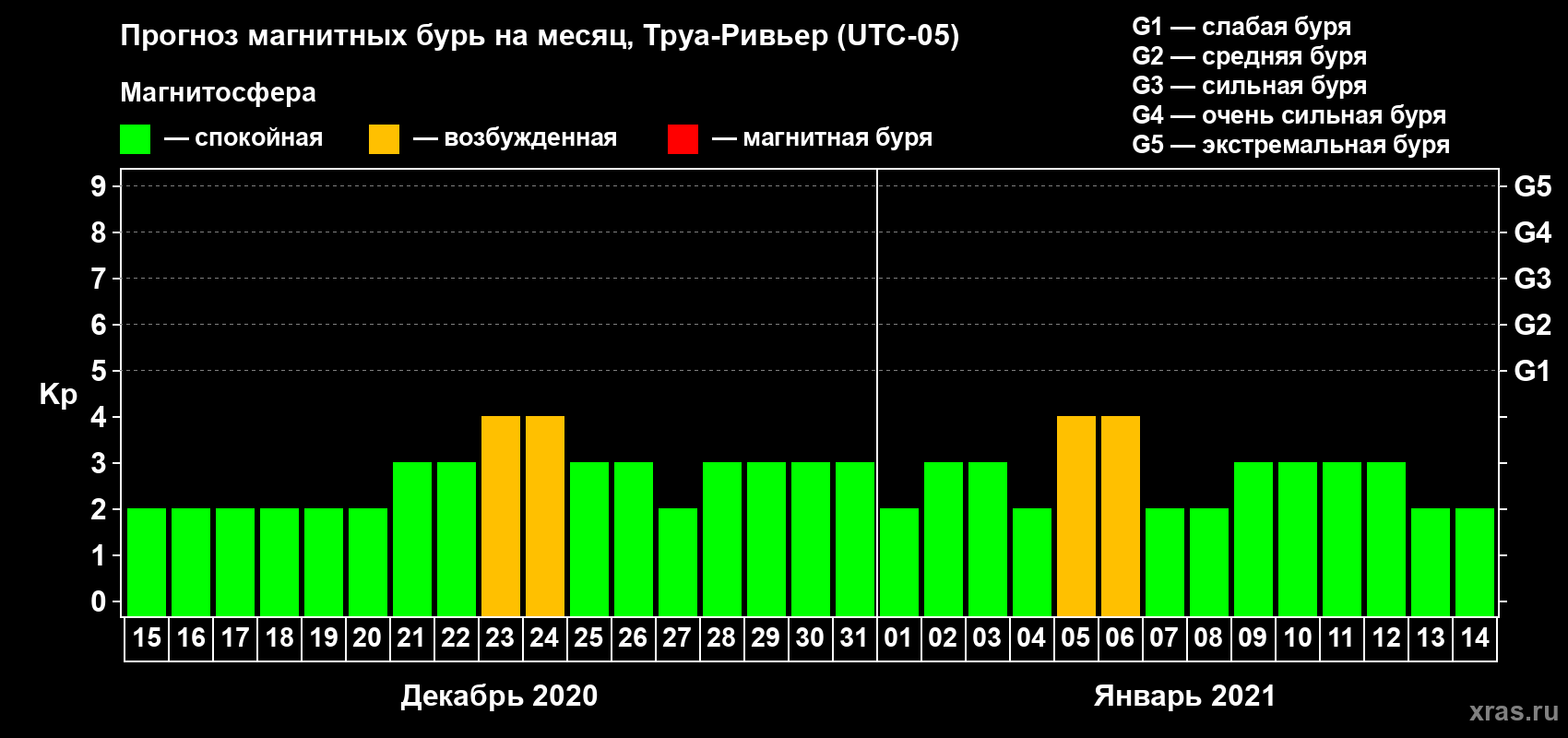 Прогноз магнитных бурь в Труа-Ривьере — 15 декабря 2020 года