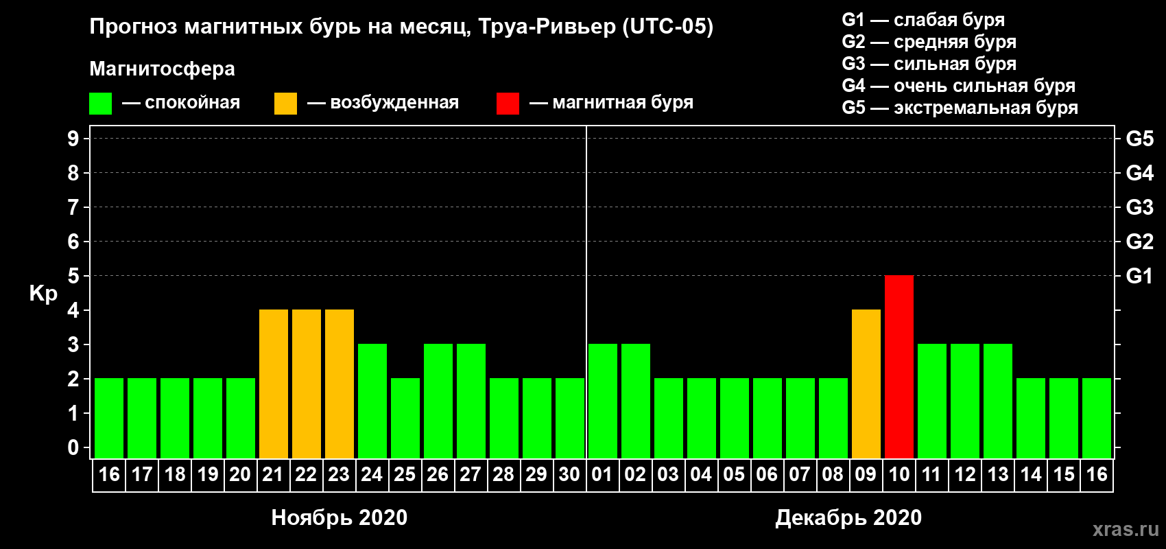 Прогноз магнитных бурь в Труа-Ривьере — 16 ноября 2020 года