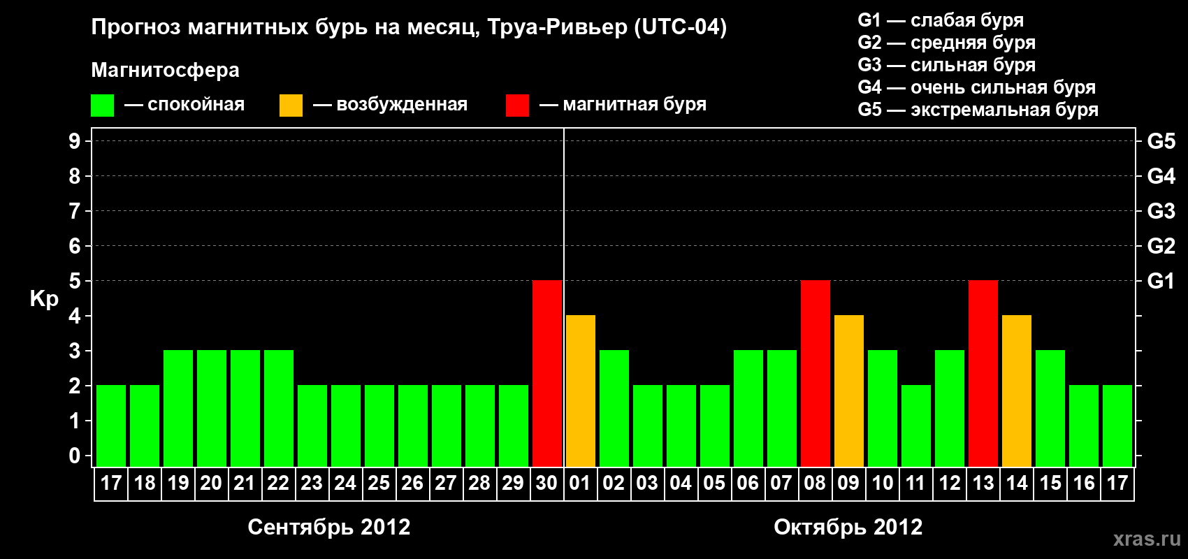Прогноз магнитных бурь в Труа-Ривьере — 17 сентября 2012 года