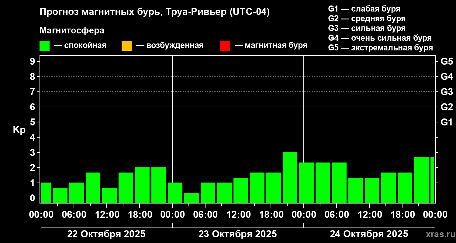 Прогноз магнитных бурь в Труа-Ривьере — 22 октября 2025 года