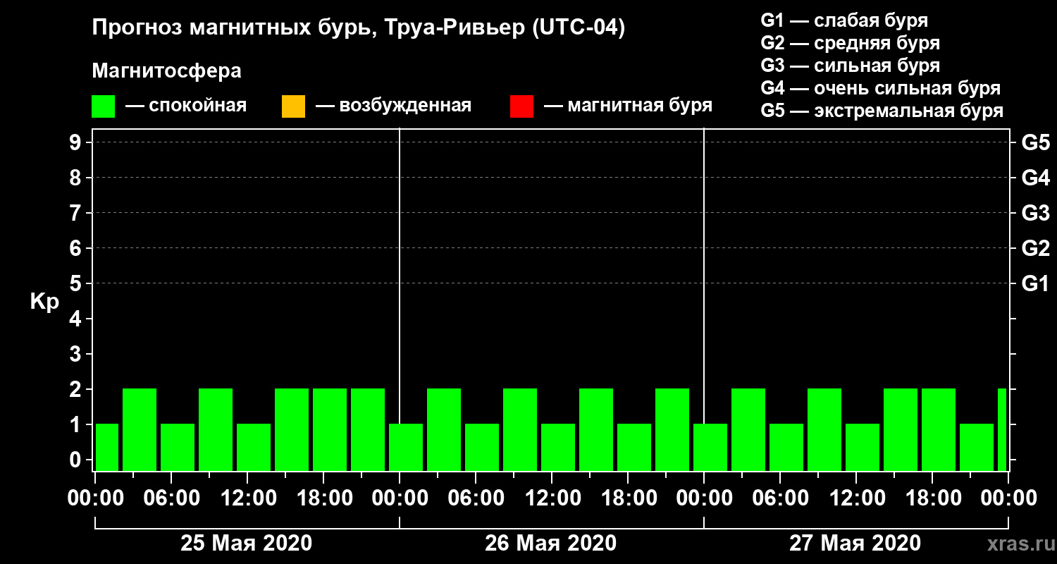 Прогноз магнитных бурь в Труа-Ривьере — 25 мая 2020 года