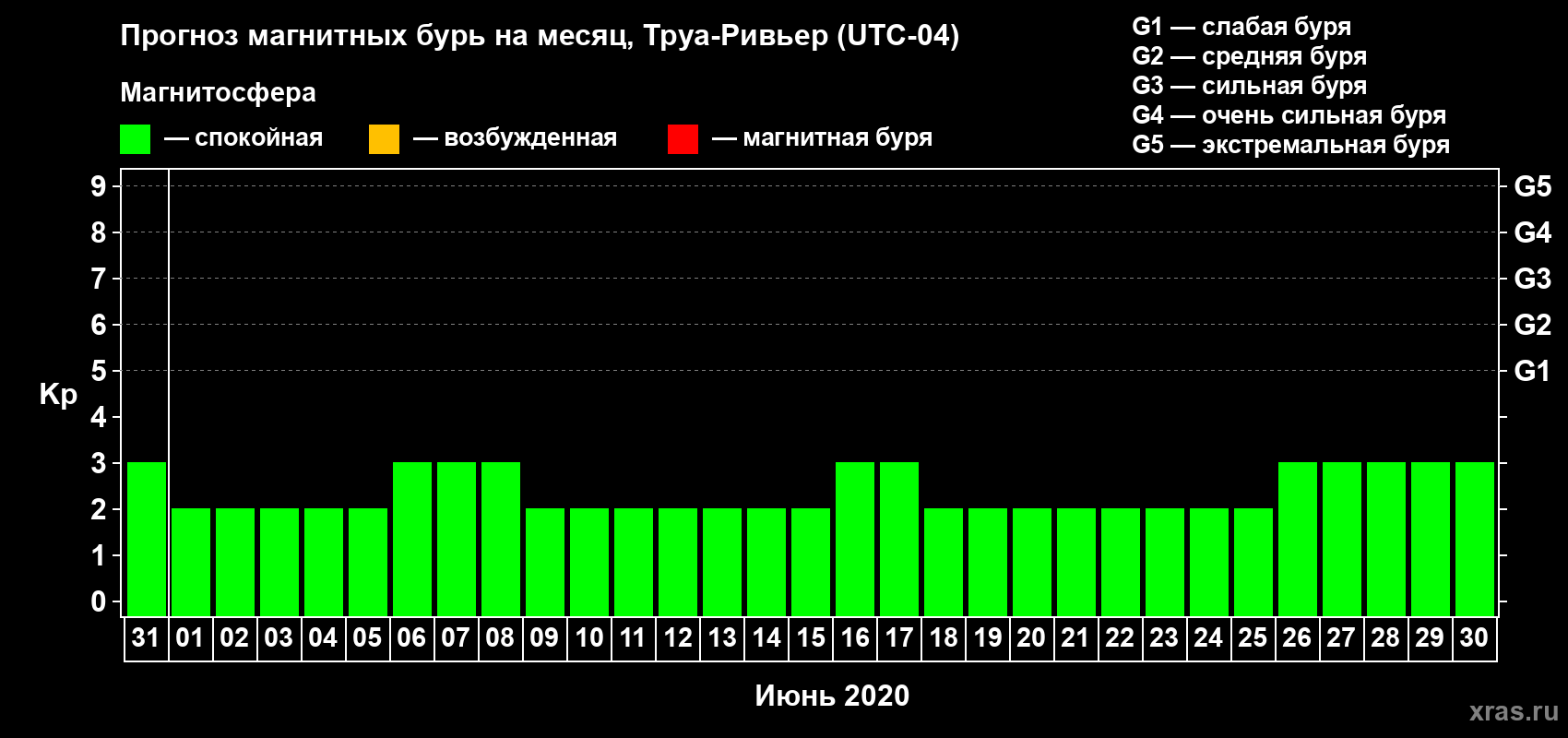 Прогноз магнитных бурь в Труа-Ривьере — 31 мая 2020 года