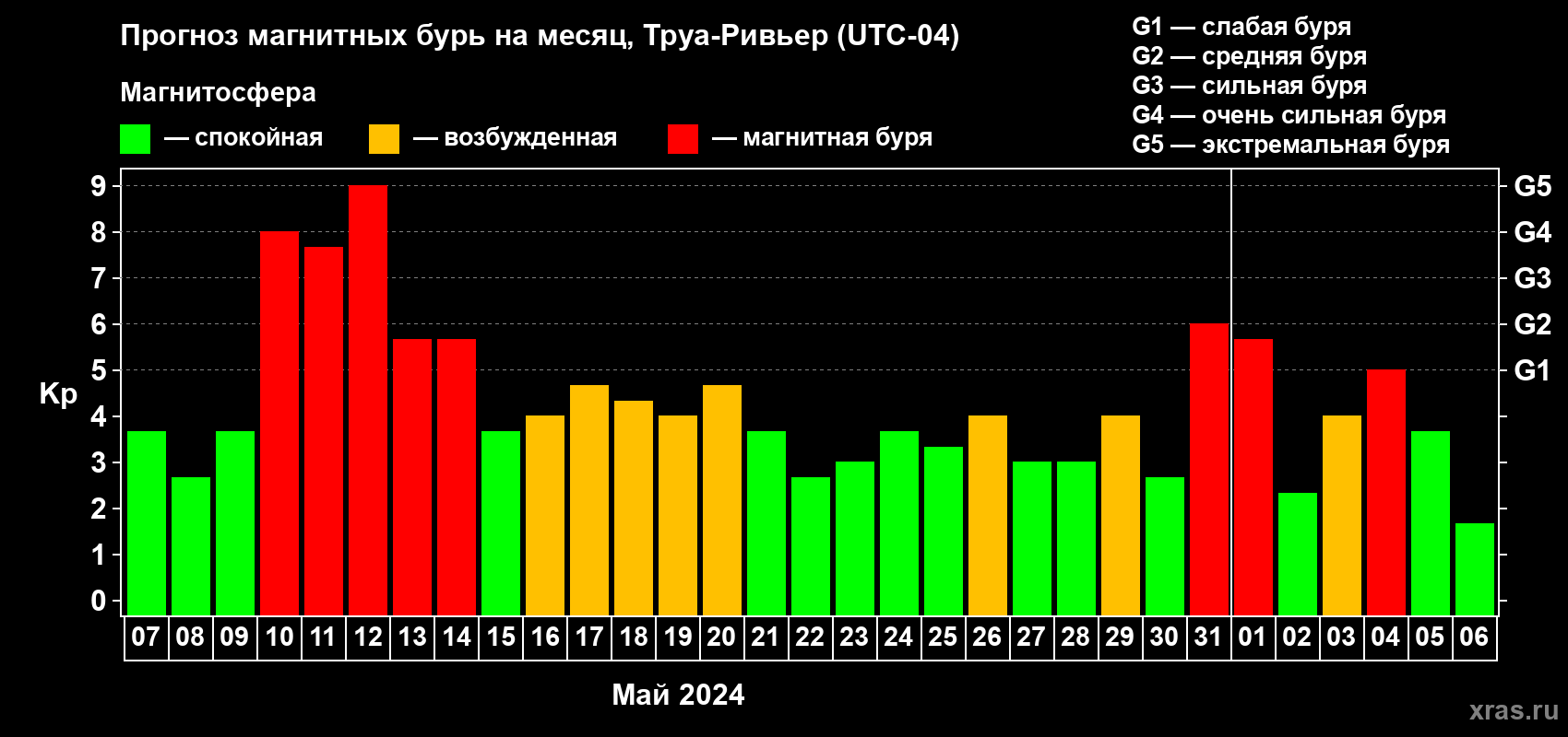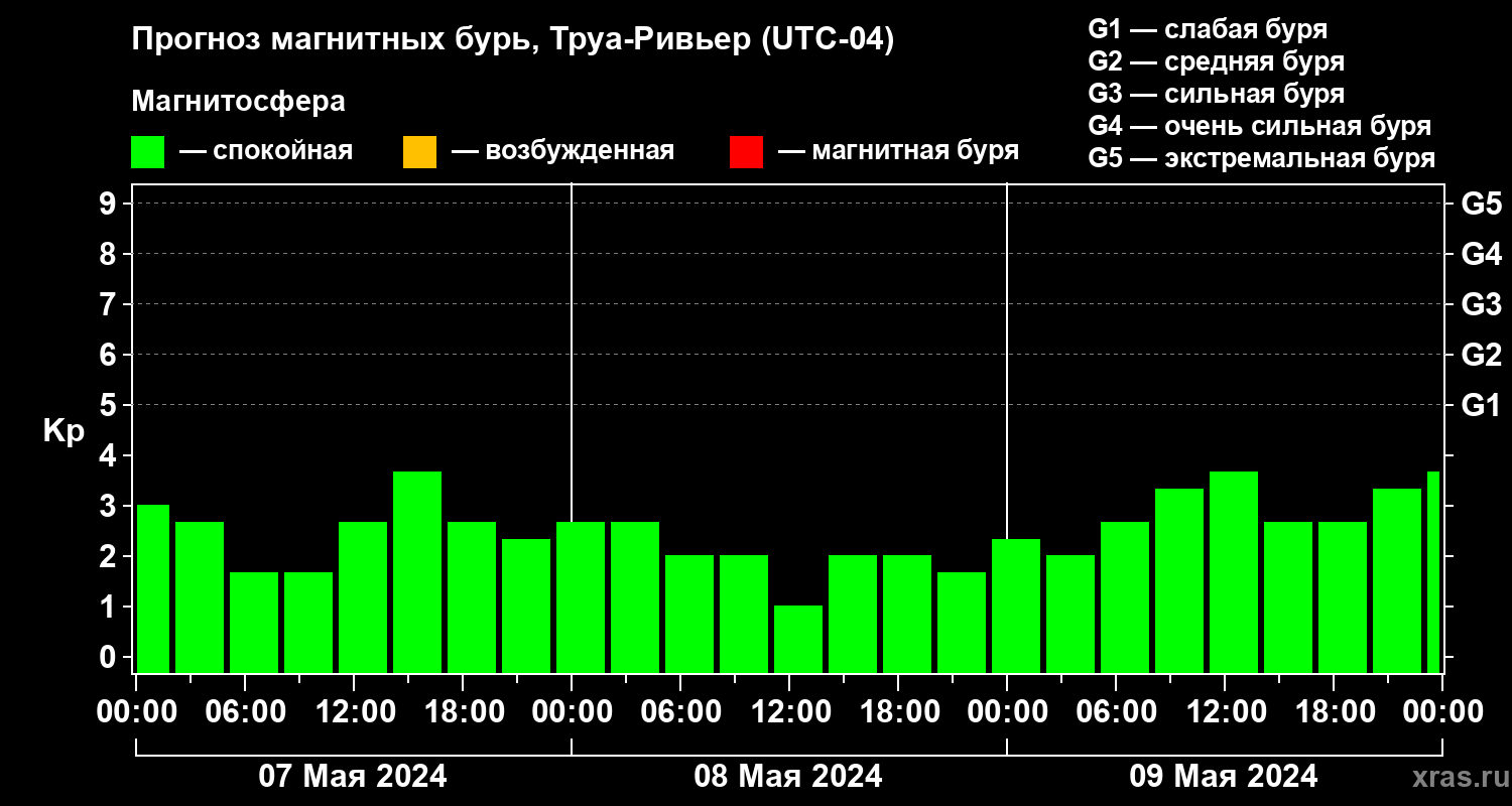 Прогноз магнитных бурь в Труа-Ривьере — 7 мая 2024 года