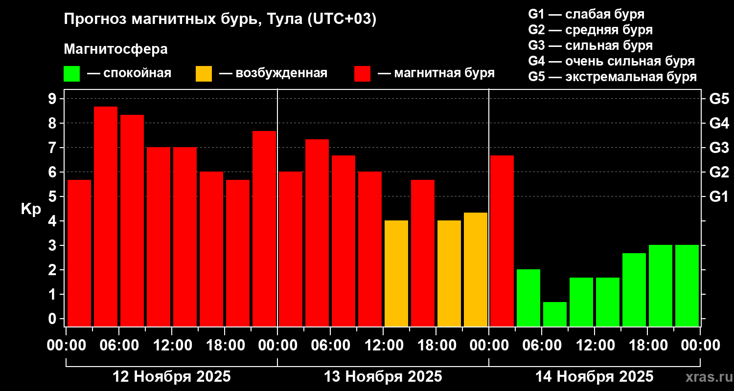 Прогноз магнитных бурь в Туле на 12 ноября 2025 года