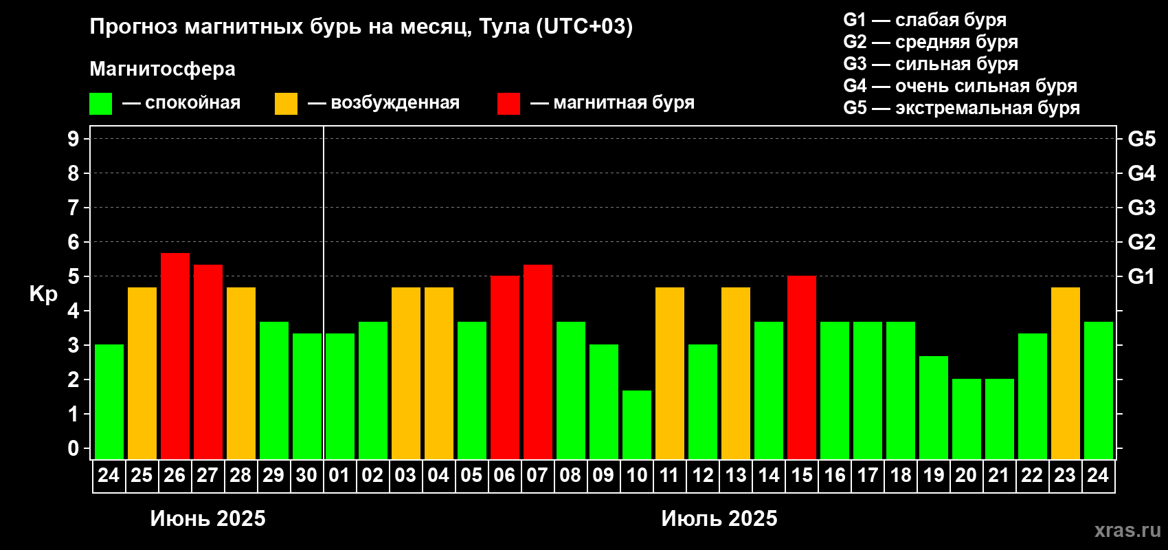 Прогноз магнитных бурь в Туле — 24 июня 2025 года