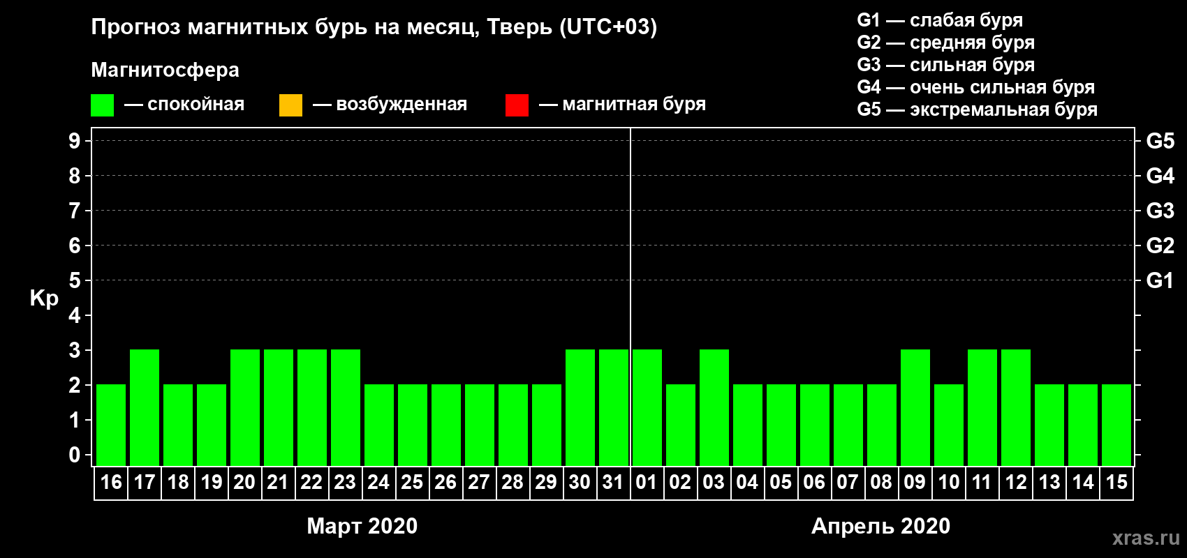 Прогноз магнитных бурь Твери на 16 марта 2020 года