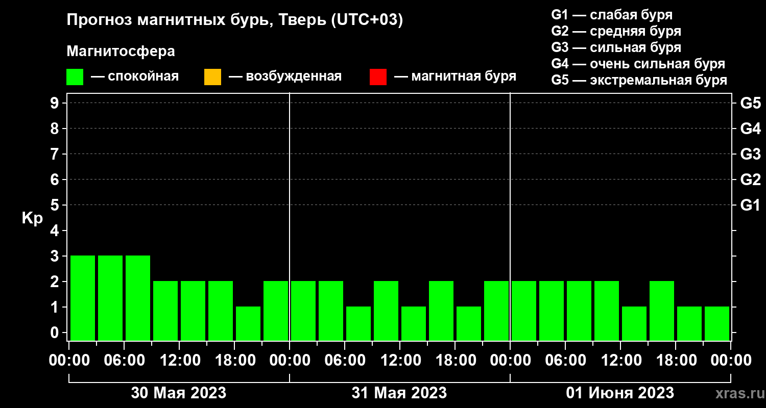 Прогноз магнитных бурь Твери на 30 мая 2023 года
