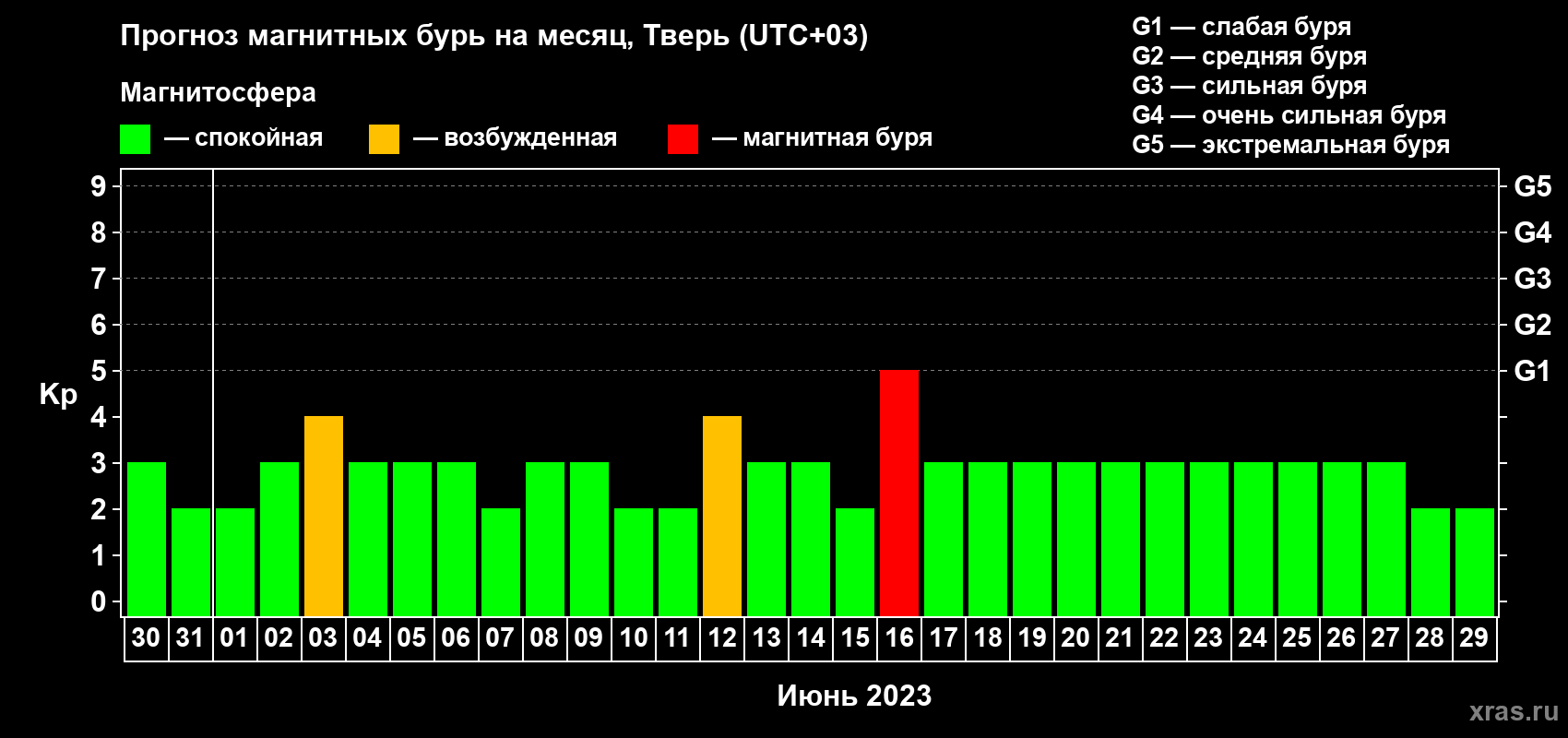 Прогноз магнитных бурь Твери — 30 мая 2023 года