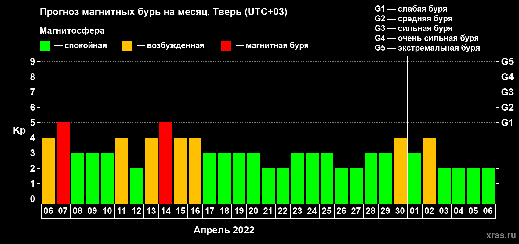 Прогноз магнитных бурь Твери — 6 апреля 2022 года