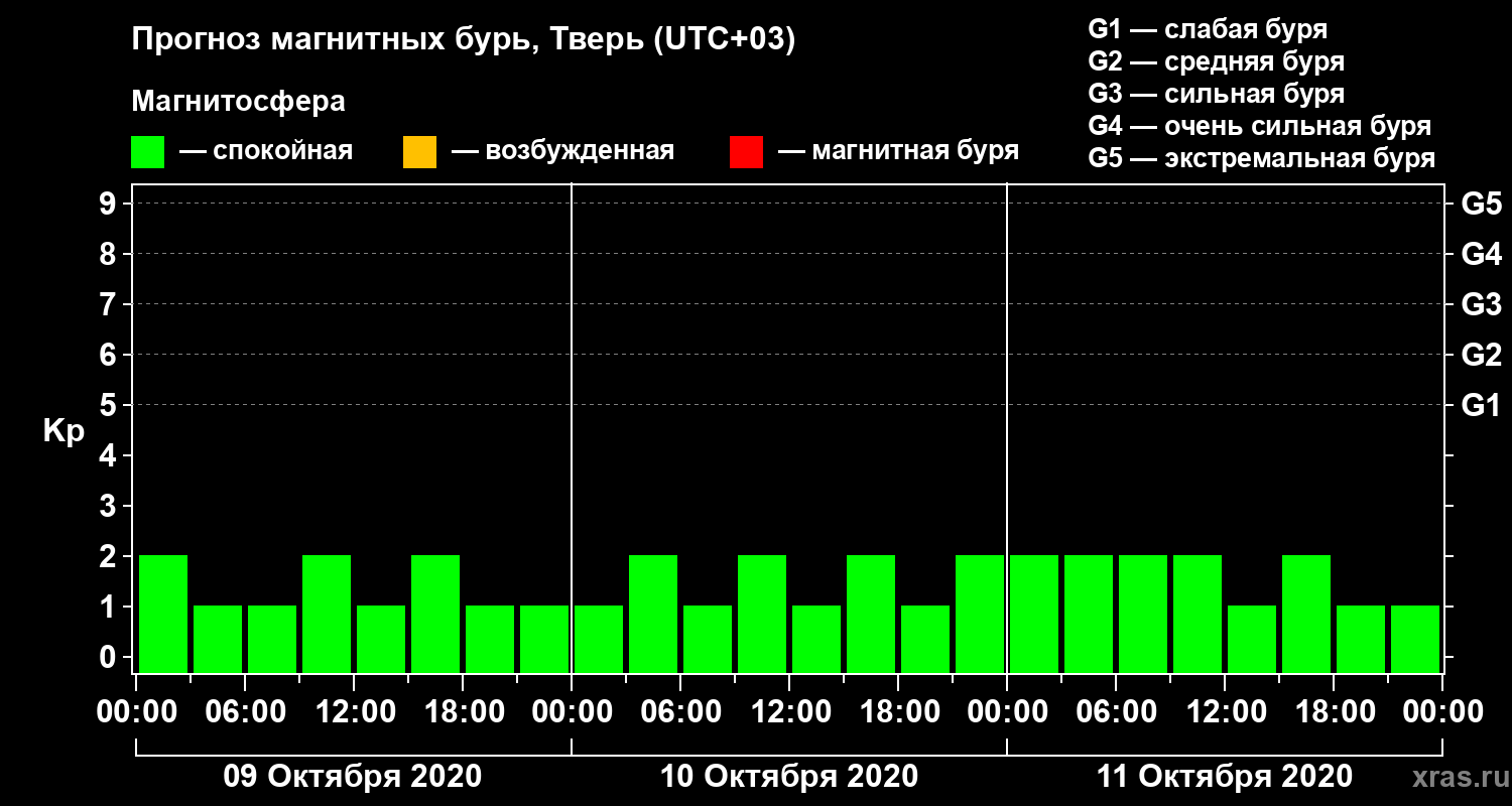 Прогноз магнитных бурь Твери — 9 октября 2020 года